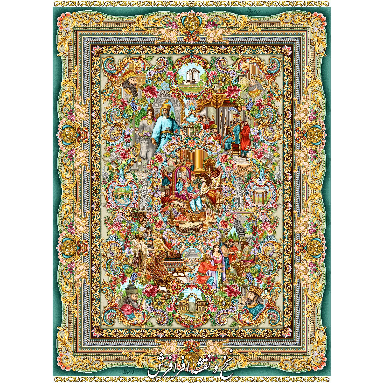 نخ و نقشه تابلوفرش سلاطین ایران حاشیه سبز