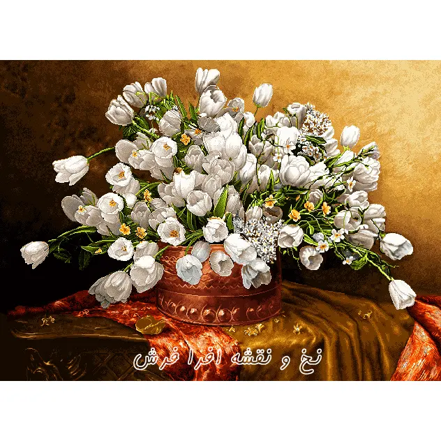 نخ و نقشه تابلوفرش گل و گلدان لاله سفید