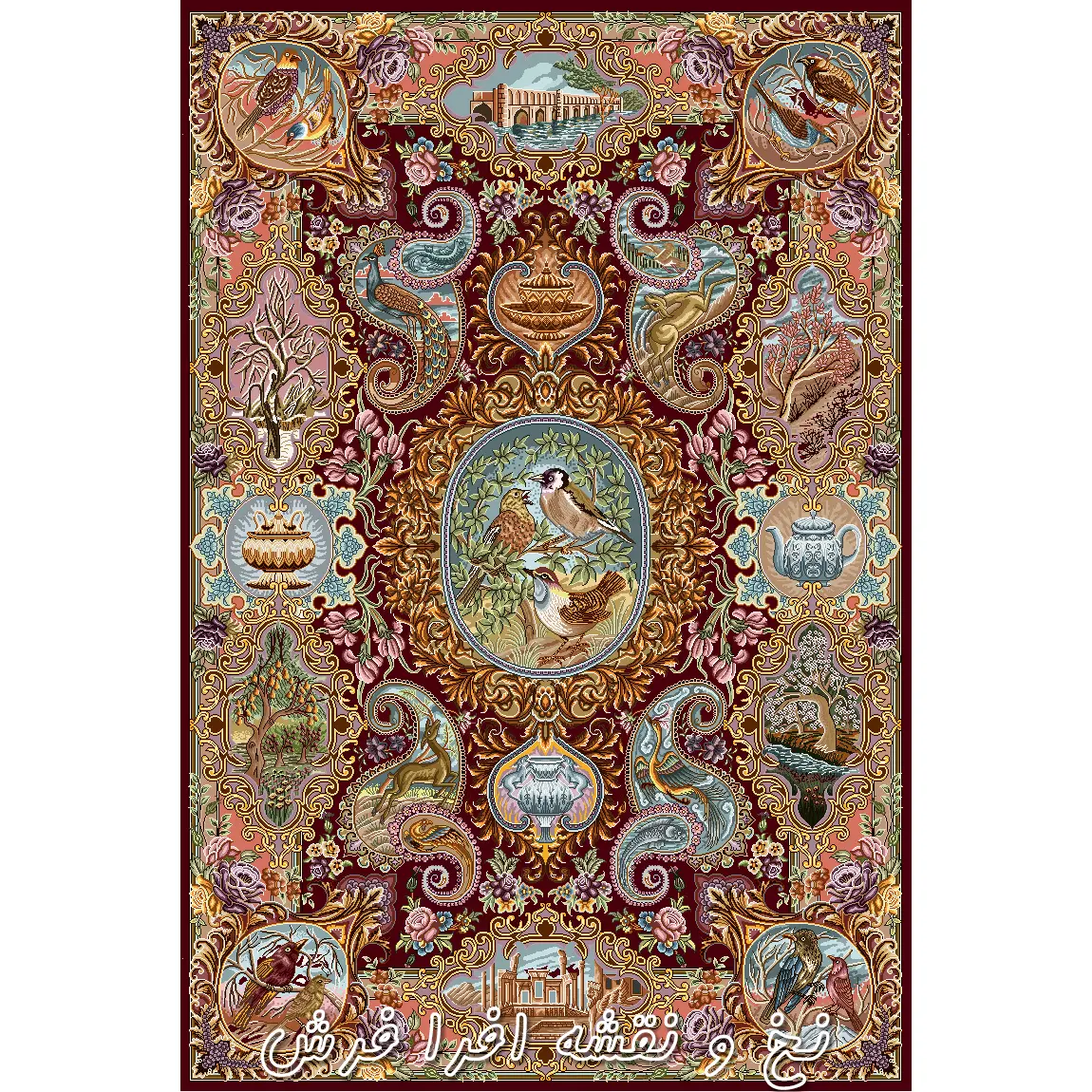 نخ و نقشه فرش قالیچه پرندگان